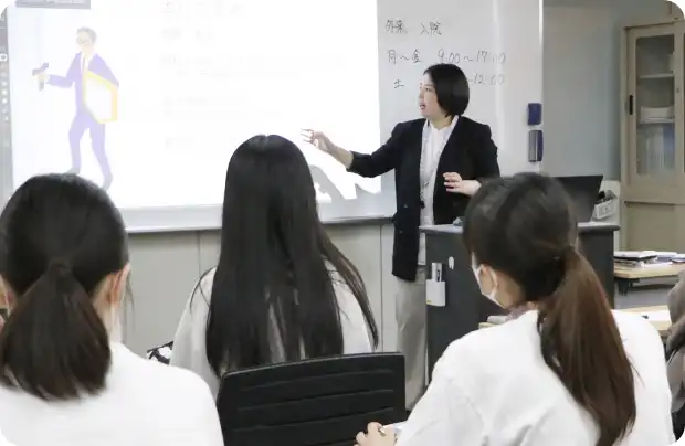 専門学校の大きな特徴は、短期間で社会に出て即戦力となる人材を育成する点です。担任制を敷き、一人ひとりに目や声が行き届く細やかな指導やサポートができる体制を整えています。