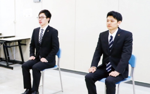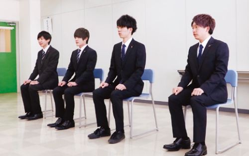 面接対策週間を設け、就職活動時の面接試験に備えて、多くの教職員から指導を受けます。様々なビジネスシーンで役立つ立ち居振る舞いが身につきます。