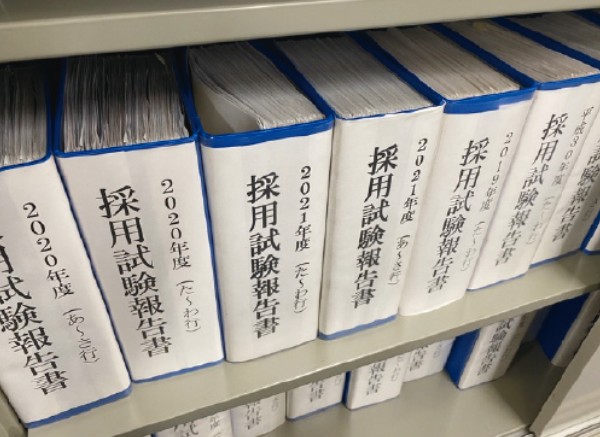 過去の採用試験等を報告書として回収し、データとして蓄積しています。採用試験の事前準備や面接対策のための資料として活用できます。