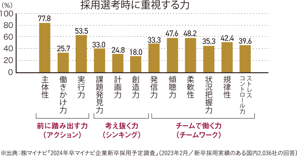 この中でも選考時に重視する力として最も多いのが「主体性」。