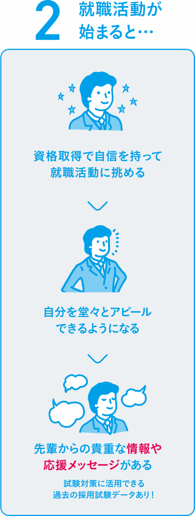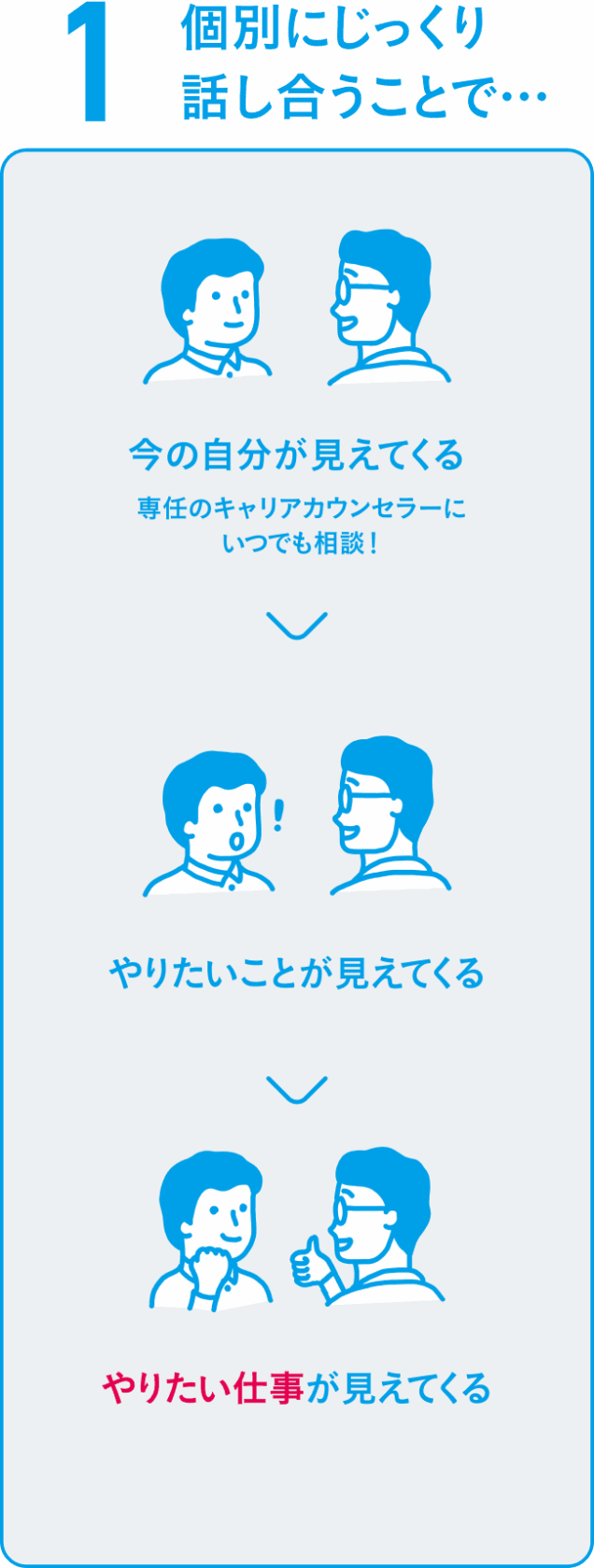 新しい世界へ飛び出す第一歩。みんなが安心して就職活動をして、笑顔で卒業するために、就職キャリアセンタースタッフやクラス担任が、あなたの就職を全力でサポートします。