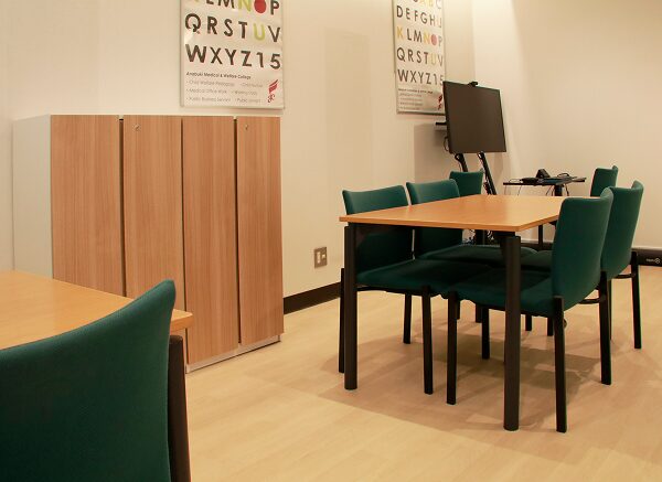 学生の就職活動をサポートする部屋「就職支援ルーム」。就職キャリアセンタースタッフがあなたの就職の相談に乗ってくれるので、安心して就職活動に臨めます。