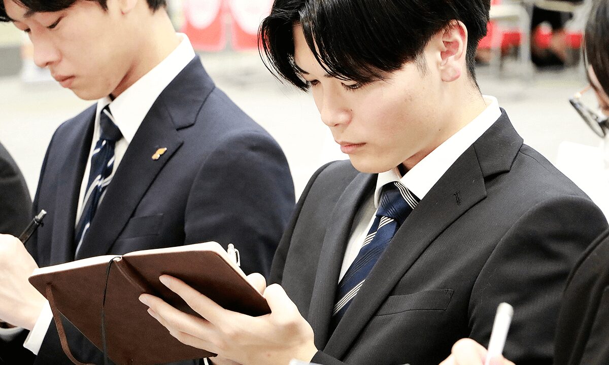 就職活動に向けてのスーツの着こなし講座や美容講習会を行います。講習を通して、身だしなみによる相手に与える印象を考えることで、自らの姿をプロの基準に合わせていきます。