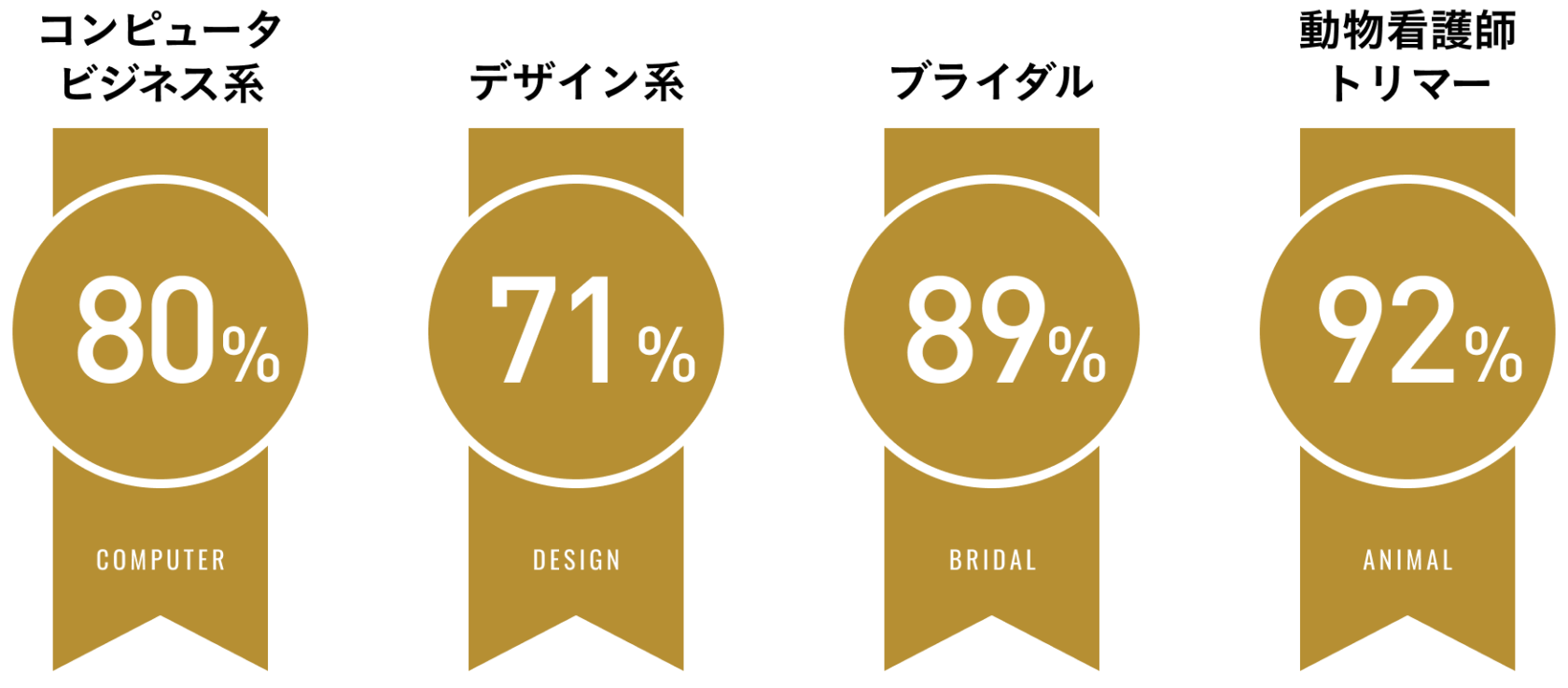本校が求めるところは、就職率だけでなく就職内定した先(業界・職種)の質にも高い目標を持っています。穴吹カレッジはただ全員就職内定を目標とするだけではありません。学んだことが活かせるという、その仕事の中身も大切と考えています。