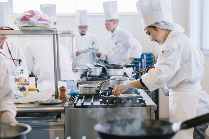 A. ブライダル・ホテル学科、高度調理学科、パティシエ・ベーカリー学科の希望者は夏休み(8月頃)・春休み(2月頃)を利用してインターンシップに行くことができます。