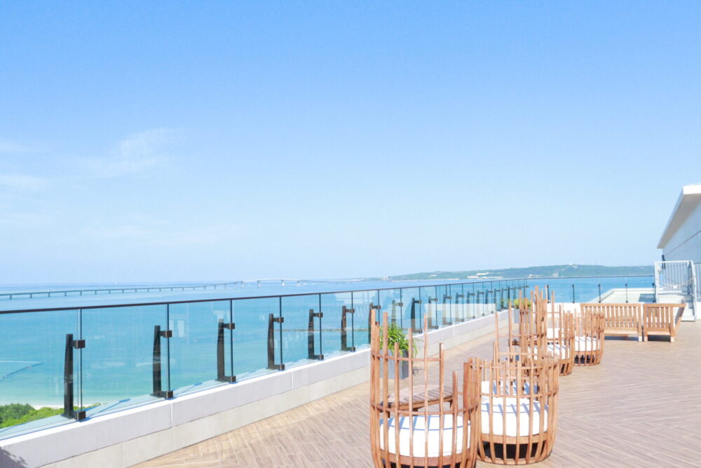 客室にはプライベートバルコニーがあり、伊良部大橋や宮古ブルーの海を一望できます。