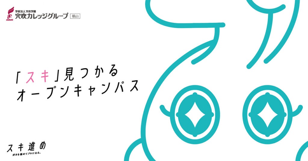 「スキ進め – 好きを極めてプロになる」穴吹カレッジ福山校の案内人、スキウサギとプロウサギですウサ!今回は3月20日のオープンキャンパスをお知らせに来たウサ!