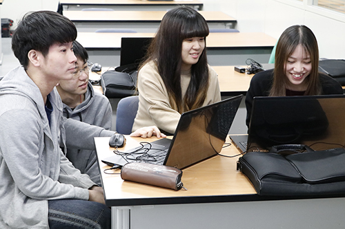 グループワーク(「不揃いの大根どうやって売る?」みたいなマーケティング的内容)、最後に明日の発表の資料作成をしていました。