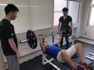 トレーニングルームでは公安系志望の学生達が熱心に体力作りに励んでいます。
