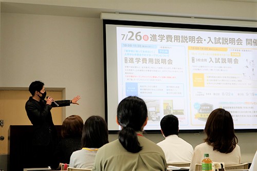 新型コロナウイルス対策のため、通常4校合同で行っている説明も会場を複数に分け、会場の消毒や換気、来校時の検温など安心してお越しいただけるよう対策をとって実施しています。