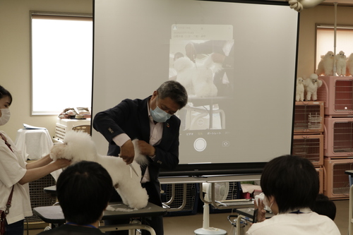▽糸井先生の弟子で当校の卒業生である現役トリマーの水戸さんも来てくれました!
