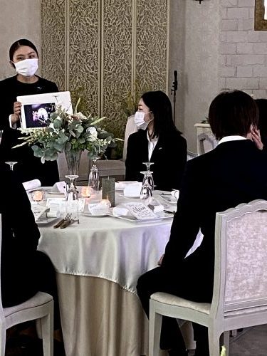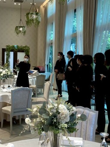 見学の後には、たくさんの質問にもお答えいただき「ブライダルプランナー」としての楽しさ、厳しさなど 心構えを伺うことができ大変勉強になりました。