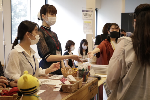 ▽受付では学生スタッフが大活躍!運営にも積極的に関わっています。