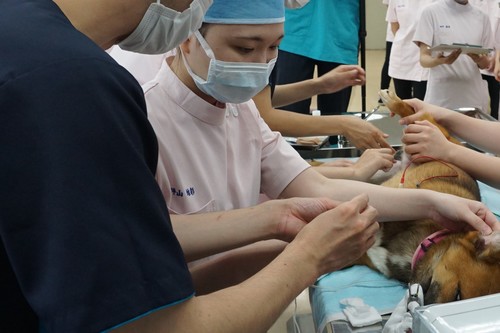 手術に必要な設備・器具を完備しているので動物病院に近い環境で実践的に学ぶことができます。 また本物の手術体験を通して、動物の命を扱う使命感も養うことができます。