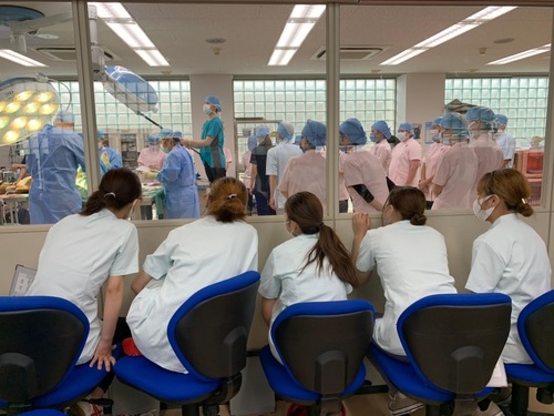 緊迫した雰囲気の中、手術は無事に終了! 2年生は初めての手術実習で緊張の連続だったと思います。