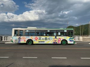 9月4日から来年3月末までJR福山駅から鞆の浦にかけて運行し、鞆の浦歴史民俗資料館の特別展や鞆の観光をPRします。市内を走るラッピングバス、見つけてみてくださいね!