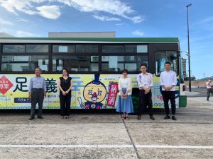 ラッピングバスは、先週9月3日(木)に鞆町のともてつバスセンターでお披露目されました。