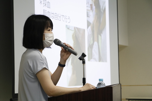 午前中は「血液検査」や「輸血」ついて講義形式で解説いただきました。