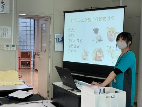 ▽ペット美容・動物看護・しつけについてクイズ形式で学びました。