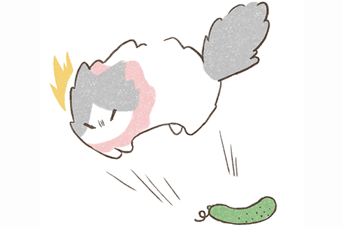 ばらいおんは「飼い主に摘んだばらの花を贈る途中、転んで頭に花びらを被ったねこ。」。