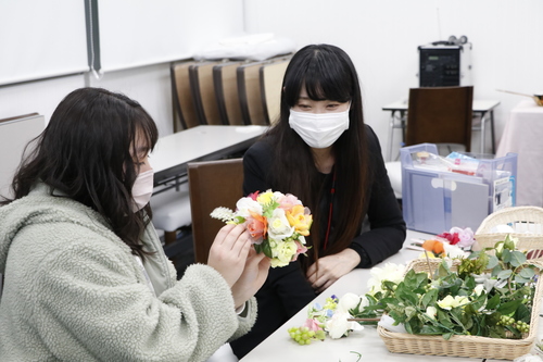 ▽ホテル・ブライダル学科「花嫁が持つ「ボールブーケ」を作ってみよう」