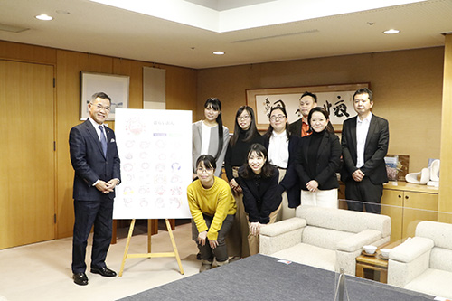 LINEスタンプがリリースされたことを報告するため、1/26(金)に枝廣直幹福山市長を表敬訪問いたしました。