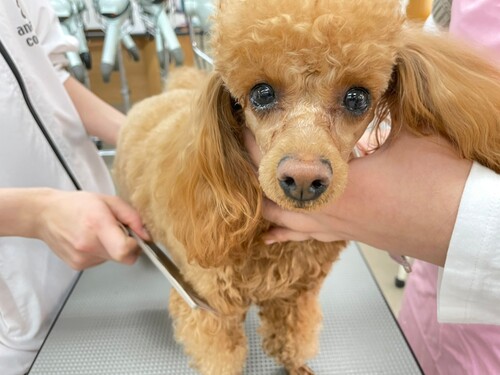 ▽獣医師の先生のスタッフ犬の健康診断をしてみました。
