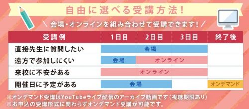 ◇会場受講とオンライン受講を組み合わせて受講できます