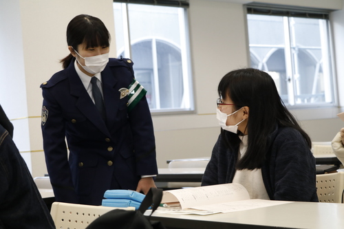 学生1人1人に声をかけてくれる警察官の方々。