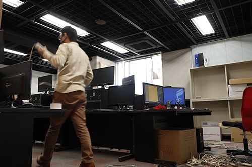 こちらはゲームクリエイター学科の実習室。なにやら荒れています。