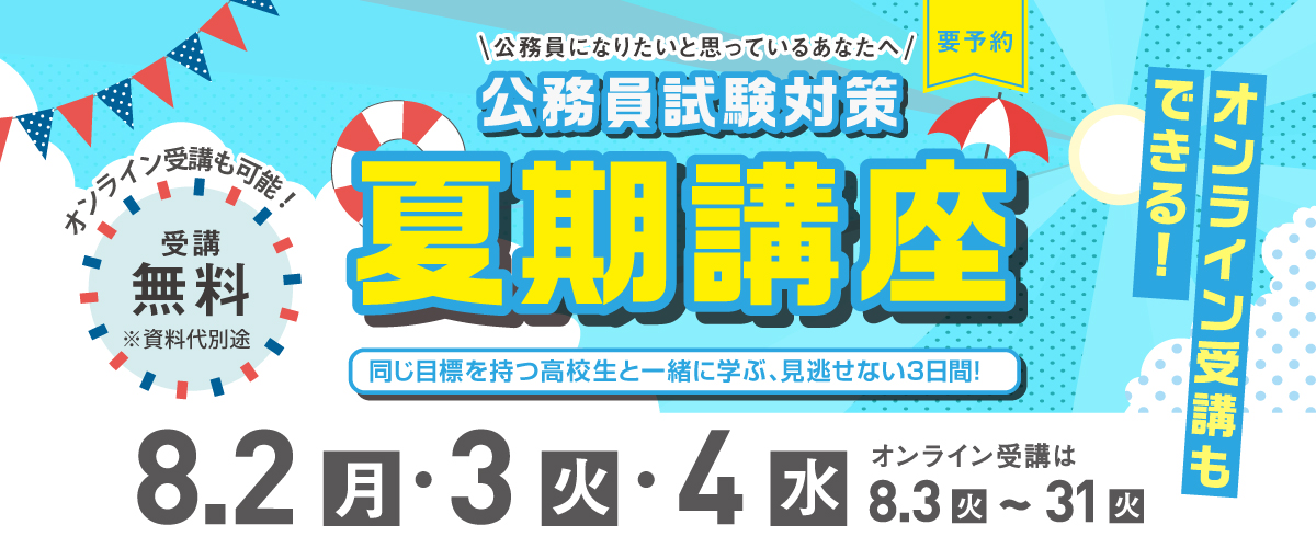 毎年、多くの公務員をめざす高校生に参加いただいている「アナブキの公務員試験対策 夏期講座」を今年も開催します。