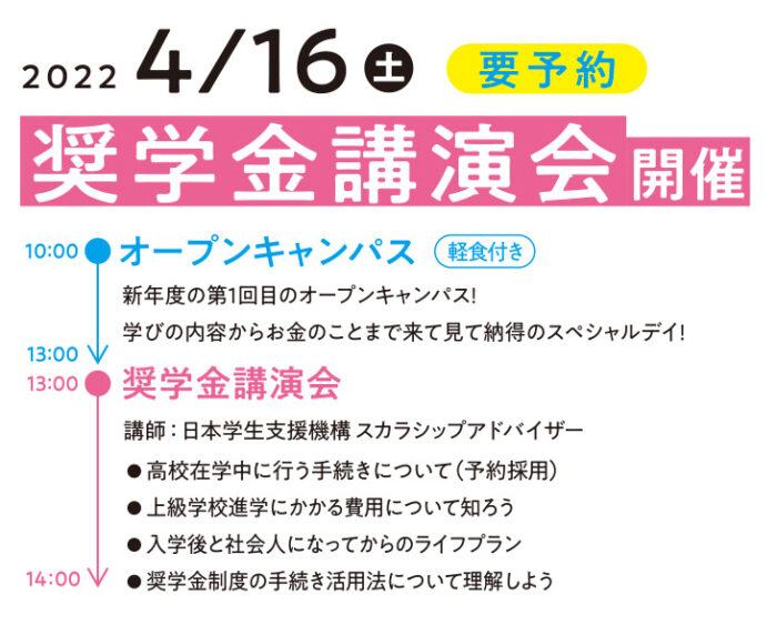 そして、同じ日に進学費用の不安を早めに解消!奨学金講演会を開催します。