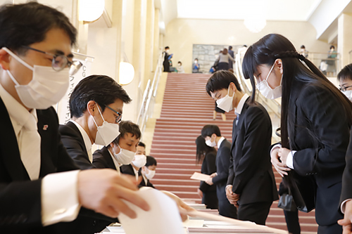 4月6日(水) 令和4年度入学式を行いました。感染拡大予防の観点からふくやま芸術文化ホールリーデンローズを会場にし、座席の間隔をとって式を行いました。 プログラム自体も時短化され実施時間は30分程度でしたが、専門学校生活のスタートとなる節目の場ということもあり、新入生の表情も真剣かつ前向きなものに見えました。また保護者の方々も多く来場され、お子さまの晴れ舞台を一緒に楽しんでらっしゃいました。 先生自ら校章をつけてあげたり! 明日(4/7)からはオリエンテーションや、授業がスタートする学科もあります。これから一緒に頑張っていきましょう!そして先生方、朝早くからの準備お疲れ様でした!
