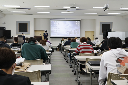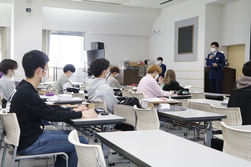 本日は新入生オリエンテーションの一環として、広島県警の現役警察官の方々に来校いただきました。