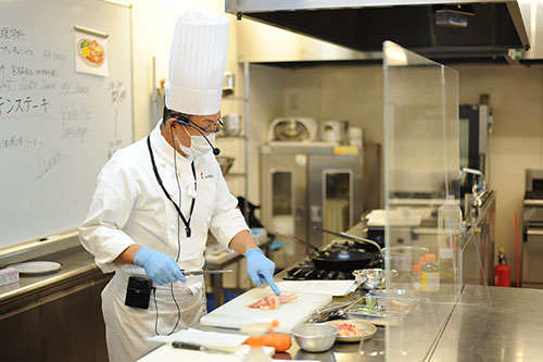 高度調理学科は肉のスペシャリスト宮脇先生。