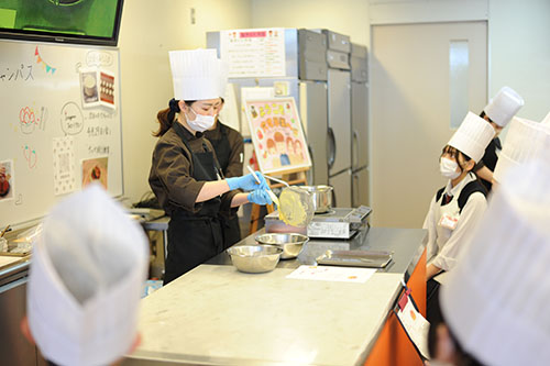 パティシエ・ベーカリー学科は山本先生。みんなと年齢も近い先生ですが、