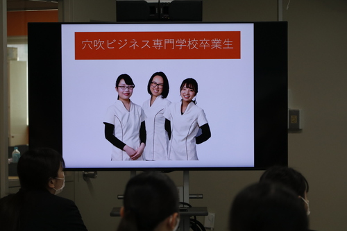 医療事務・クラーク学科の卒業生石原さんも説明に来てくれました。
