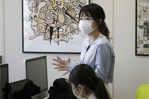 学生からはデザインに関してはもちろんのこと、使う画材や