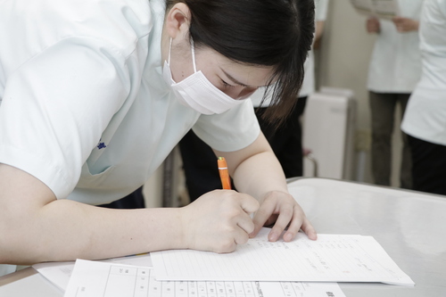検査準備やカルテ作成も動物看護師さんのお仕事。意外とやることが多いので大変です。
