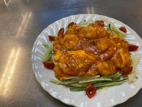 まずは高度調理学科の体験は中国料理のエビチリ。