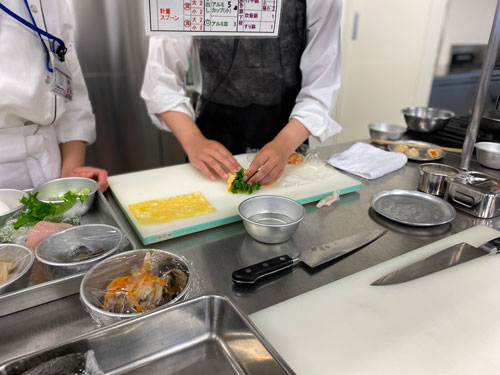 高度調理学科は和洋中と給食料理も学ぶことが可能で、オーキャンの体験メニュウも様々。今回は4月以降で初めての日本料理体験でした!