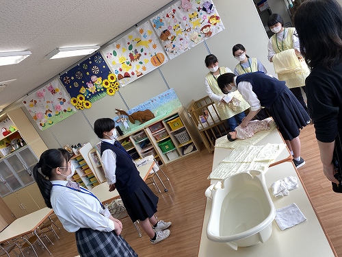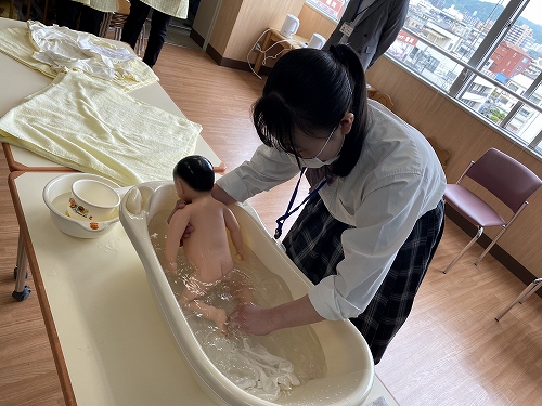 みんなの前で沐浴体験をしたので、緊張したみたいですね!
