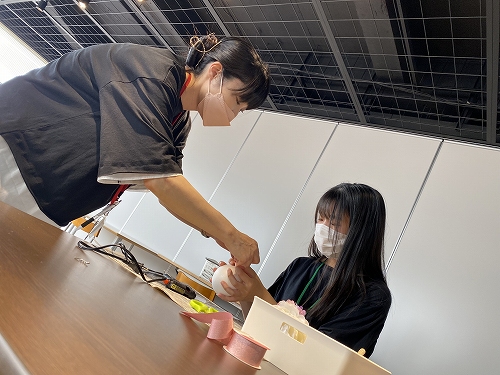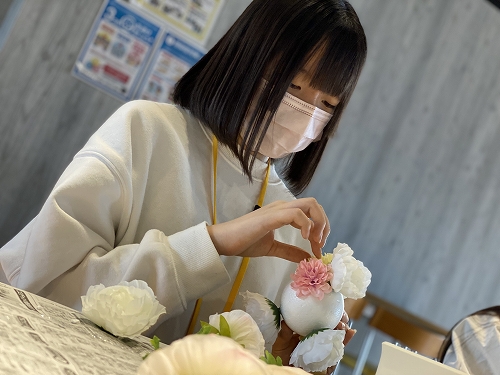 先生から花の配置や色合いなどのアドバイスをもらいながら作製しました!