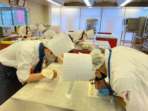 今年度に入り、初の校内検定が今週の金曜日に実施される為、パティシエ・ベーカリ学科2年生が毎日練習を重ねています。