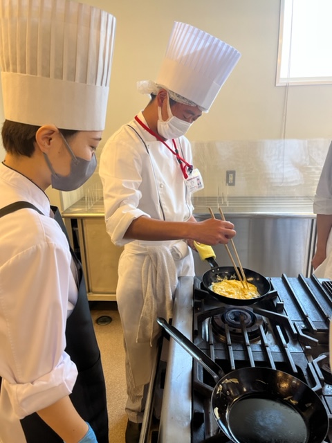 オムレツも練習中の先輩が優しくサポートしてくれるオープンキャンパス、5月と6月のメニューも更新しているので、こちらから確認とご予約とご参加を♪