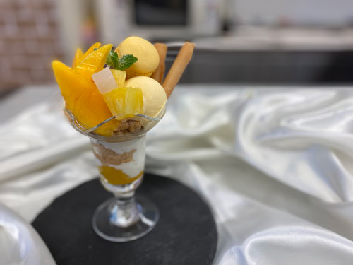 パティシエ・ベーカリー学科はマンゴーパフェ。