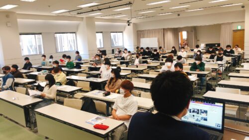 学生はメモを取ったりして、真剣に聞いていました。