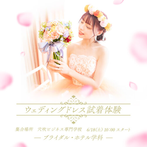 6月18日(土)のオープンキャンパスはウェディングドレスが試着できるスペシャル企画です。