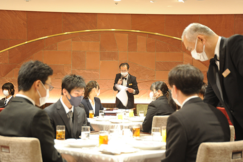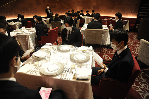 着席し、担当の方より食事中のマナーについて説明。