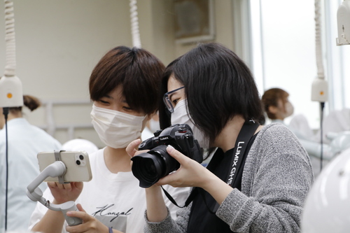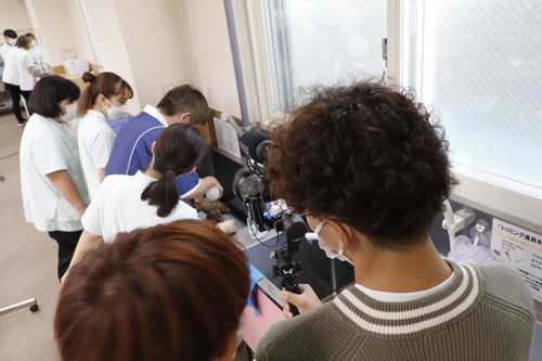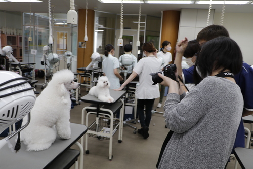 少し緊張しつつ動物健康美容学科の学生も、和やかな雰囲気での取材で撮影を楽しんでいました。